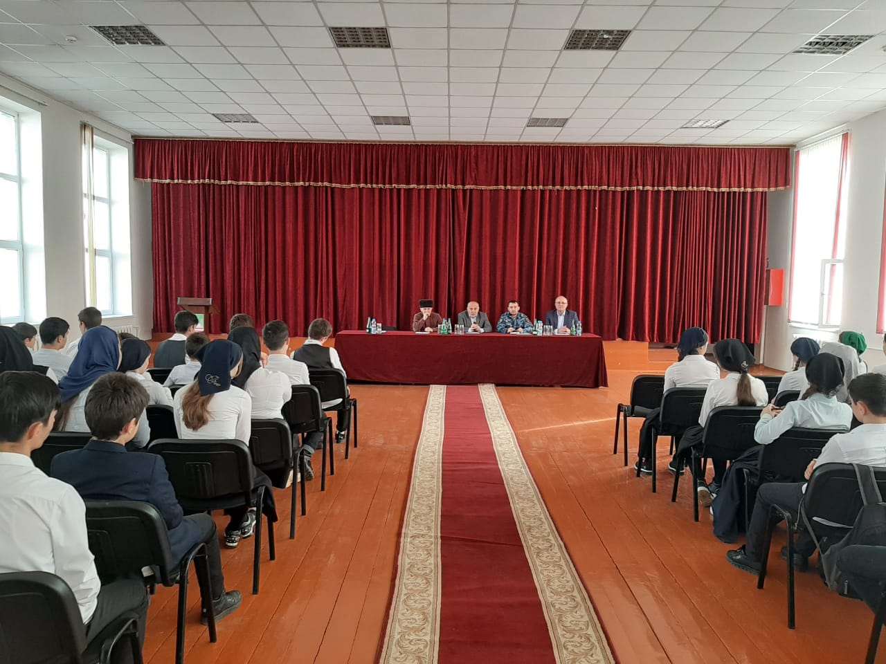Сегодня в нашей школе прошла встреча представителей префектуры, духовенства и правоохранительных органов с учащимися 8-10 классов на тему "Духовно-нравственное воспитание подрастающего поколения. Профилактика правонарушений и вредных привычек". Беседу проводили:Первый заместитель Префекта - Султанов Р.И. Имам п.Турбина - Горшков Х.Начальник ПДН ОП√3 Алтамиров С-М.А.Директор школы - Исаев А.Ш.