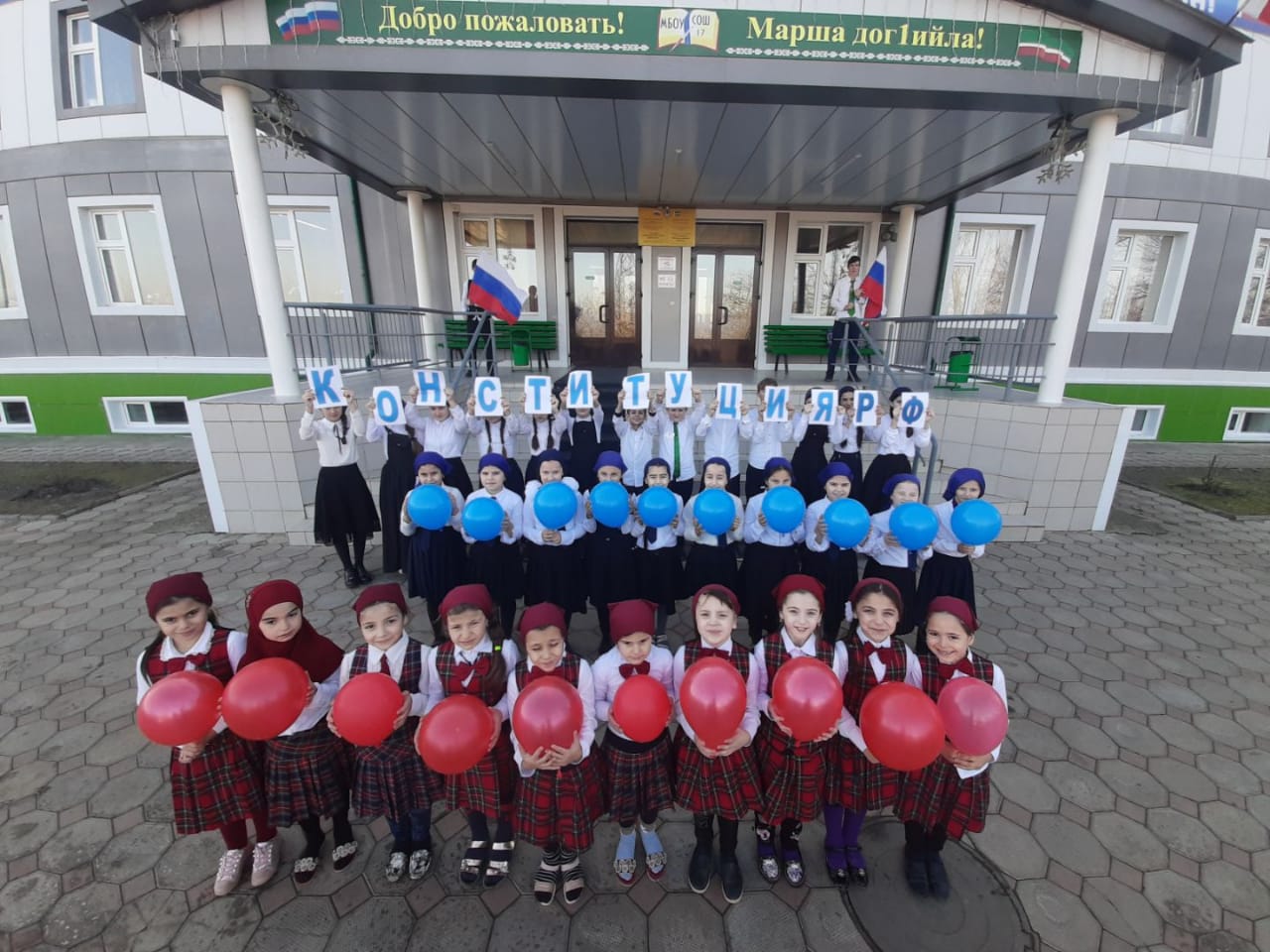Патриотический отряд "Юные Кадыровцы" организовали сегодня флэшмоб ко Дню Конституции РФ