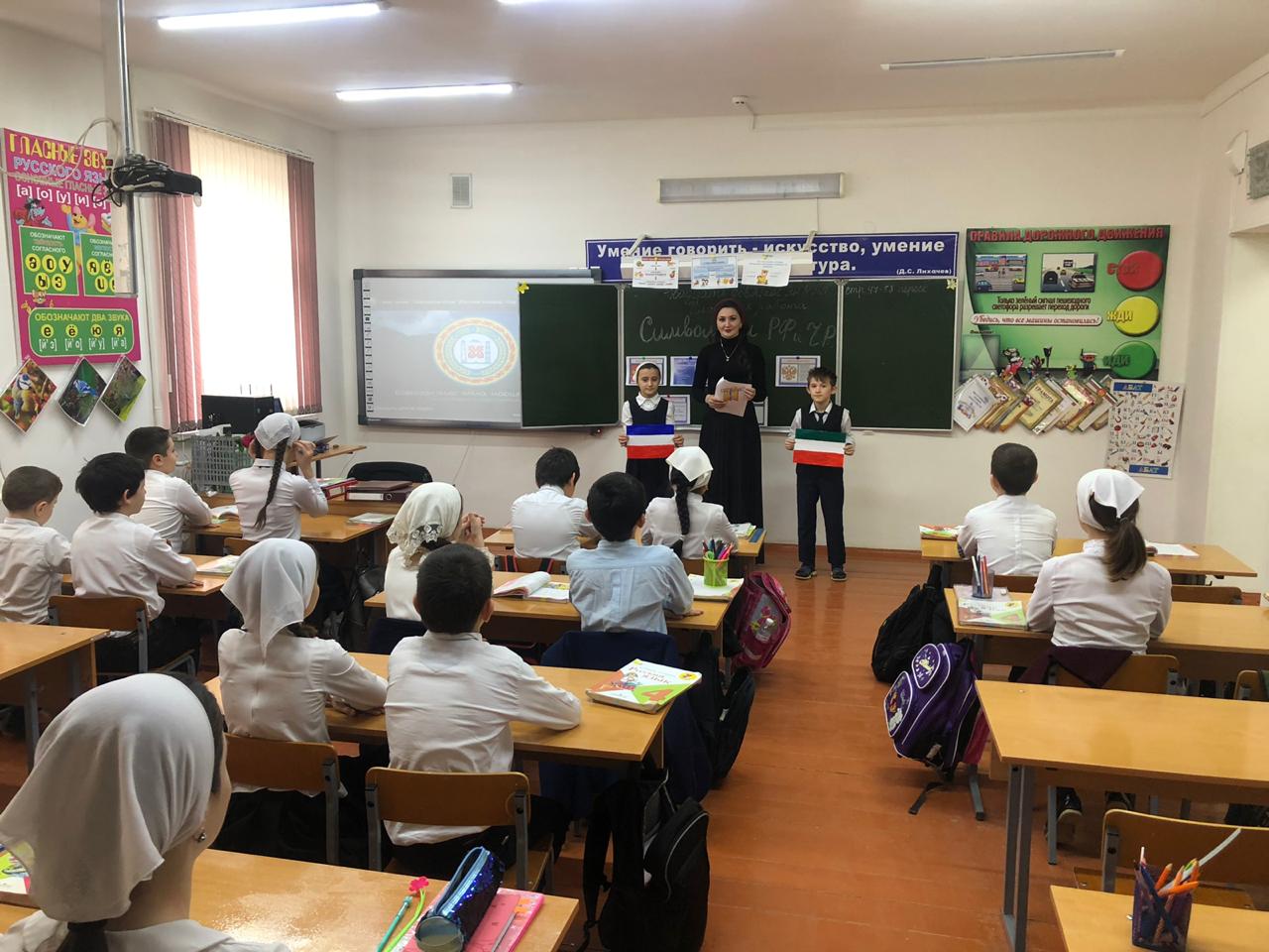 29.01.2020г. во всех классах прошли классные часы, беседы на тему "Символика РФ и ЧР"
