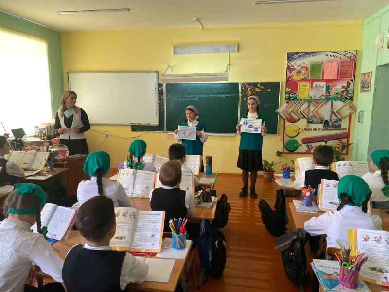 В рамках месячника "Внимание - дети!", отряд "Юные инспектора движения" провели сегодня агитационную работу "Безапасная дорога к школе", в рамках которой рассказали учащимся начального звена о правилах дорожного движения и вручили им брощюры.