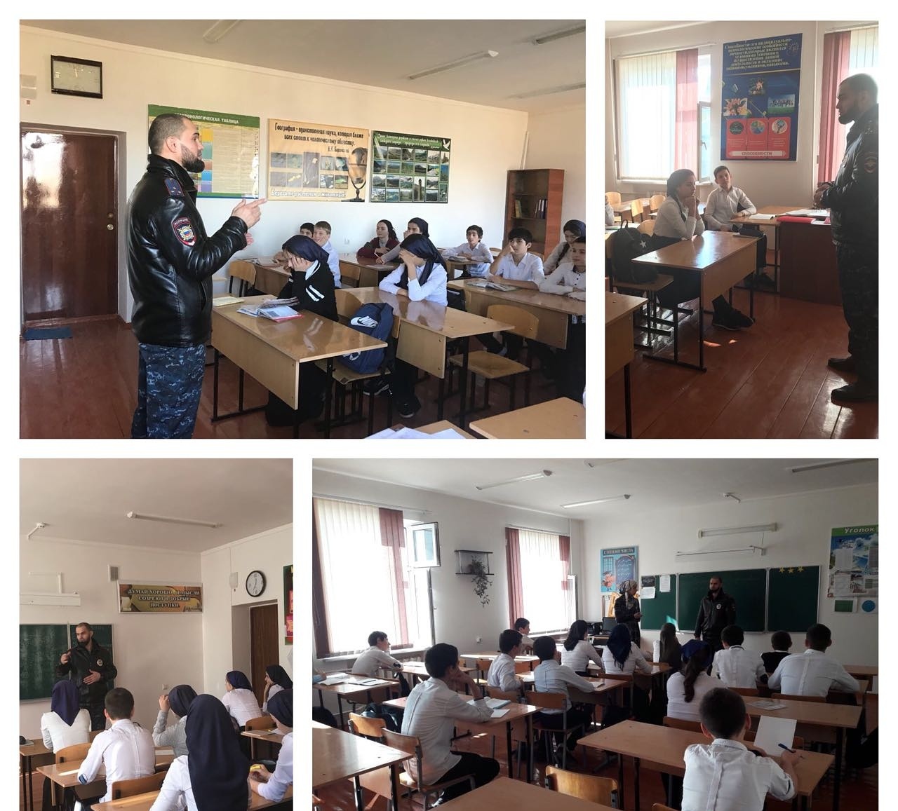 В рамках проведения профилактических мероприятий «Семья» 13.11.2017г. заместитель директора по ВР Израилова З.Г., педагог-организатор по ДНВ Абдулаев Б.Р., совместно с инспектором ПДН ОП №4 ст.лейтенантом полиции Зубайраевым М.Х провели беседу с учащимися 5-9 классов МБОУ «СОШ №17» по темам: «Административная и уголовная ответственность за совершение правонарушений», «Ответственность родителей за нахождение детей на дорогах, препятствующих передвижению свадебных картежей», а также «Нахождение детей в ночное время суток без надзора вдали от дома».