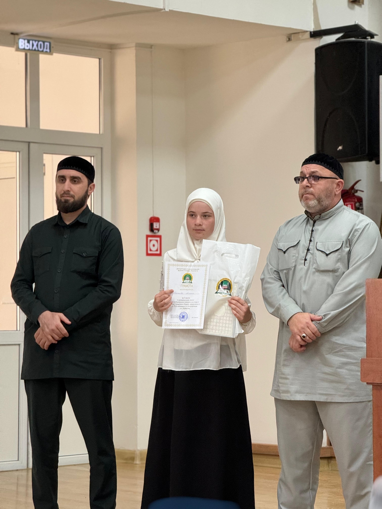 14.08.202514 августа в Грозном прошел Муниципальный этап Республиканского конкурса на лучшего чтеца Священного Корана, приуроченный к 74-й годовщине со дня рождения А.А. Кадырова (Дал г1азот къобал дойл цун) в котором первое место заняла ученица 9 «А» класса МБОУ «СОШ №17» г. Грозного, Нагиева Амина