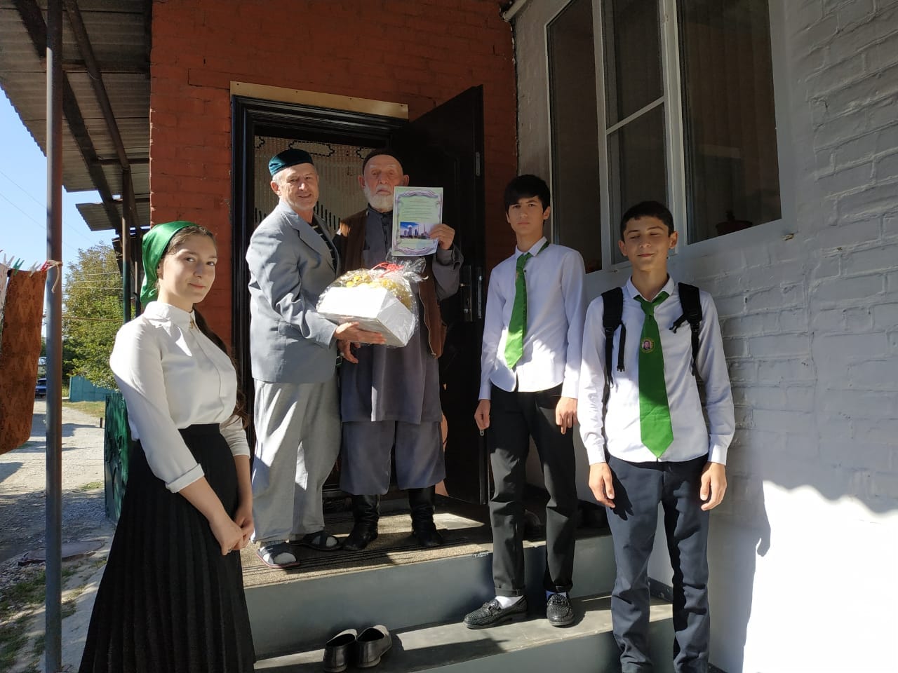 Члены патриотического отряда «Юные Кадыровцы» посетили долгожителя поселка, Атаева Абуязида Адиевича и поздравили его с Днем города.