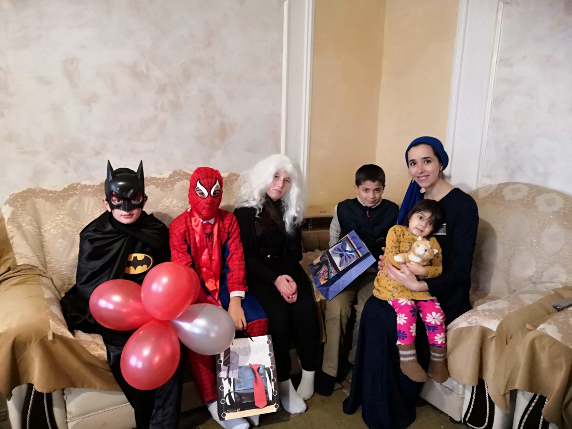 Активисты, одетые в костюмы супергероев, вручили маленьким друзьям подарки: игрушки, сладости и элементы одежды.