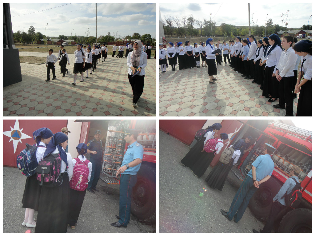 - экскурсия на пожарную часть, где представители пожарной части продемонстрировали современные устройства для тушения пожара, приемы надевания элементов защитного снаряжения и противогаза.