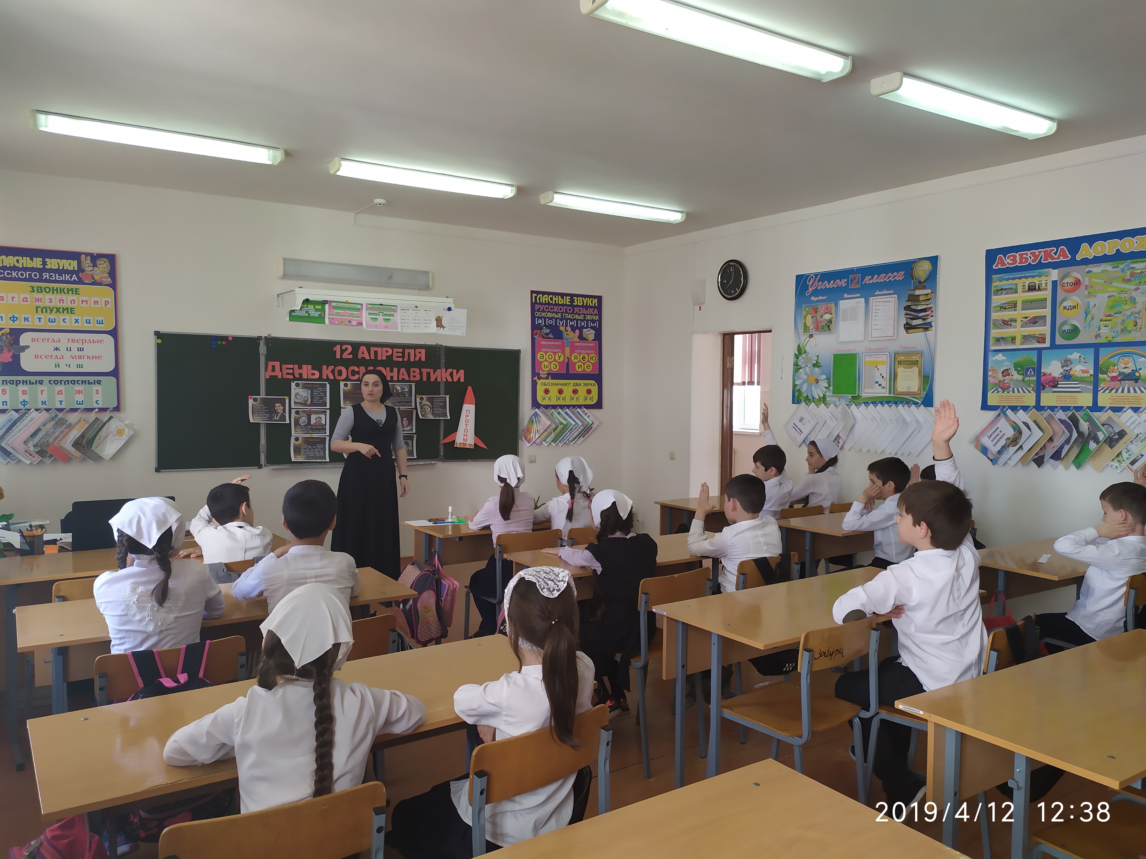 12.04.19г. классный руководитель 2 «Б» класса Эскиева З.В. провела открытый Гагаринский урок «Космос – это мы», приуроченный ко Дню космонавтики.