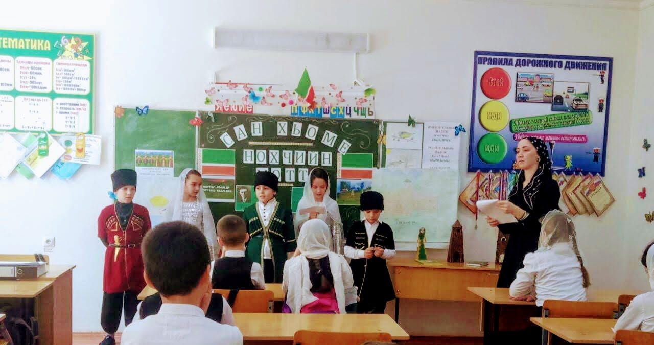 Классный руководитель 3 "В" кл. Айгумова Р.А. провела открытый урок "Сан хьоме нохчийн мотт", посвященный Дню Чеченского языка
